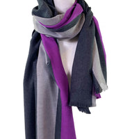 A modern wrap that goes everywhere with you. Great for indoors, outdoors and travel, too! This modern rectangular shawl can be used as an oversized scarf or wrap to keep you warm.