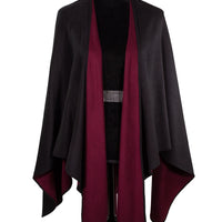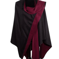 Enjoy our best-selling brushed silk in a cape!  This piece is sure to catch attention with contrasting colors and elegant hemmed finishing.  Swing one side over your opposite shoulder for a wrapped-up, dramatic look!