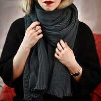 A must-have wrap that goes wherever you do. Perfect for indoors, outdoors, and travel. This generously sized rectangular shawl drapes effortlessly, bringing easy warmth and timeless elegance to any look.